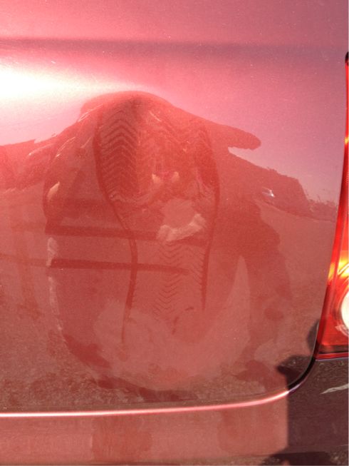 一体何時何に私はぶつけてしまったんだろうと車に近づいてみると凹んだ場所にはクッキリとでっかい足跡が…orz
