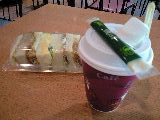デンプンもののみの食事だといくら食べても満足感がないし覿面に太ってしまうので、普段あんまりパン屋さんに行かない私だが、たまたま(多分急いでいた)ジャスコの入り口付近のパン屋でミックスサンドのパックをひっつかみ、レジでコーヒーを買って横のテーブルで食べてみたらとっても美味しかった。 以来時々お昼にこのセットを食べている。