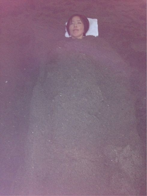 そして禁断の砂蒸し風呂写真。気持ちよくなる以前に踵が熱くて絶えられず飛び出しリタイアorz。
