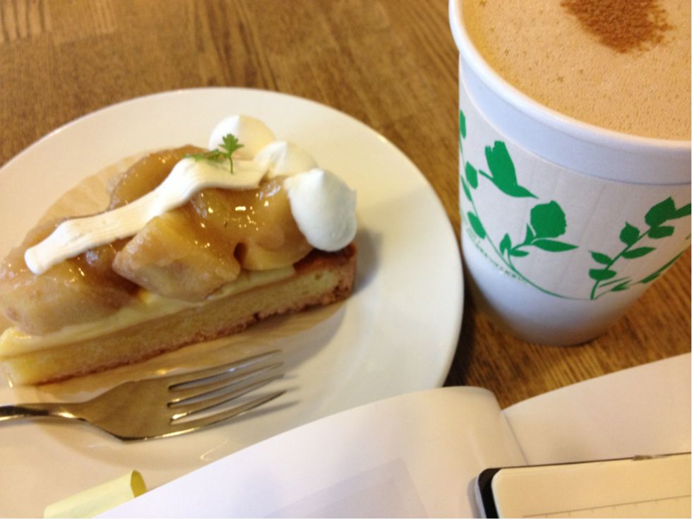 リンゴのタルトのリンゴは、透き通るまで煮込まずに生の食感を残した仕上がり。タルトの土台にはその店のこだわりや丁寧さのレベルがある程度現れると思うのだが、ここの味は一筋縄ではいかない複雑さがあり、適度な湿り気を保持していて食感がよい。コーヒーはもちろん美味しい(ただしヨーロピアン系深煎りの苦味とコクが好きなひと向き)が、今回オーダーしたこのチャイもスパイスの使い方、茶葉の煮出し方が絶妙。