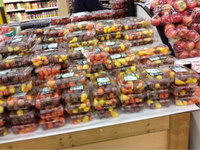 なぜか一つのスーパー内に似たような品ぞろえで同じような規模の野菜売り場が2か所ある。 これは有機野菜売り場とそうでない野菜売り場があるからで、西海岸とか東海岸のスーパーでは結構それが普通らしい。 このスーパーの近くにはさらに有機野菜のみ扱うオーガニックスーパー、TRAIDER JOE'S があるのだが、色の洪水のような通常のスーパーの後では店内はまるで盆栽屋のように地味に見えてしまう。