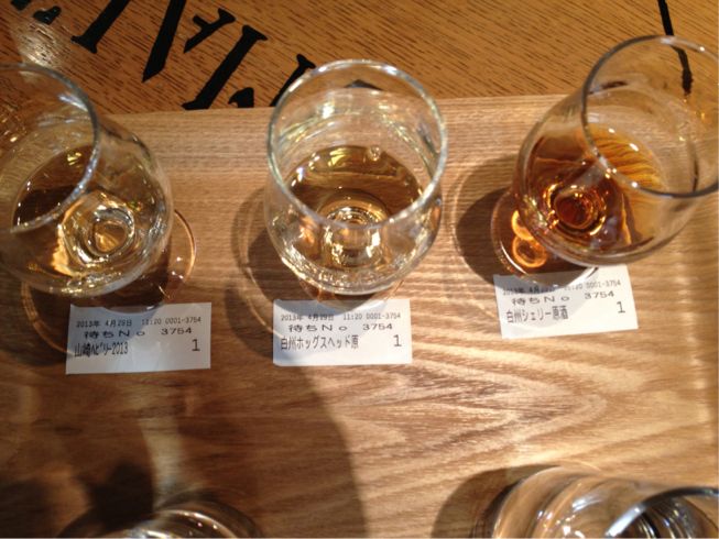 次の日は山崎のサントリーの工場見学へ。通常なら当日受付で見学できるらしいのだが、さすがに連休中は予約だけで定員オーバーの為内部見学はできなかった。それでもとりあえずミュージアム、売店、試飲バー(有料)は利用できる。ウイスキーなんてほとんど飲んだことがなかったけど、こうして並べて味見してみると原料や作成年度の違いもあるだろうけど特に熟成樽の味への影響って強いんだなあって思う。そしてもちろん、ブレンドの方が単味よりも美味しいっていうのはコーヒーの例を挙げるまでもない。