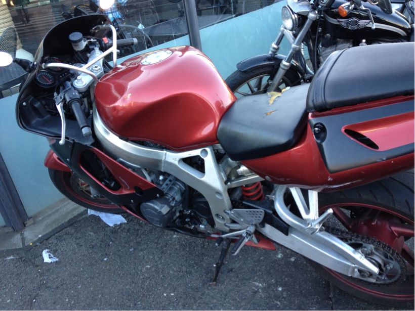 史上稀にみる最悪のシナリオ。 本来なら謹慎したほうが精神的によさそうだったが、その翌日は翌日で別のバイク友達との約束があった。 まあなんとかなりそうかなと思って、仁くんをバイク屋さんに持っていかずにそのまま出かけた。 だけどなんかおかしい。 曲がったり止まったり発進したりする都度に、まるでバイクに乗り始めた頃に感じてたのと同じような恐怖感を感じる。 腑に落ちないまま、次の日バイク屋さんに仁くんを預けにいったら、ハンドルが歪んでしまっていることが判明( ;´Д`)。