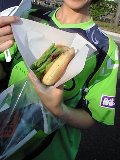 今回はいつもおにぎり買う湯郷のコンビニが、女子サッカーの試合があるとかですっからかんになってて、会場内の屋台の焼きそばを買って食べた。 焼きそばも串刺しの肉も、結構おいしかったよ。
