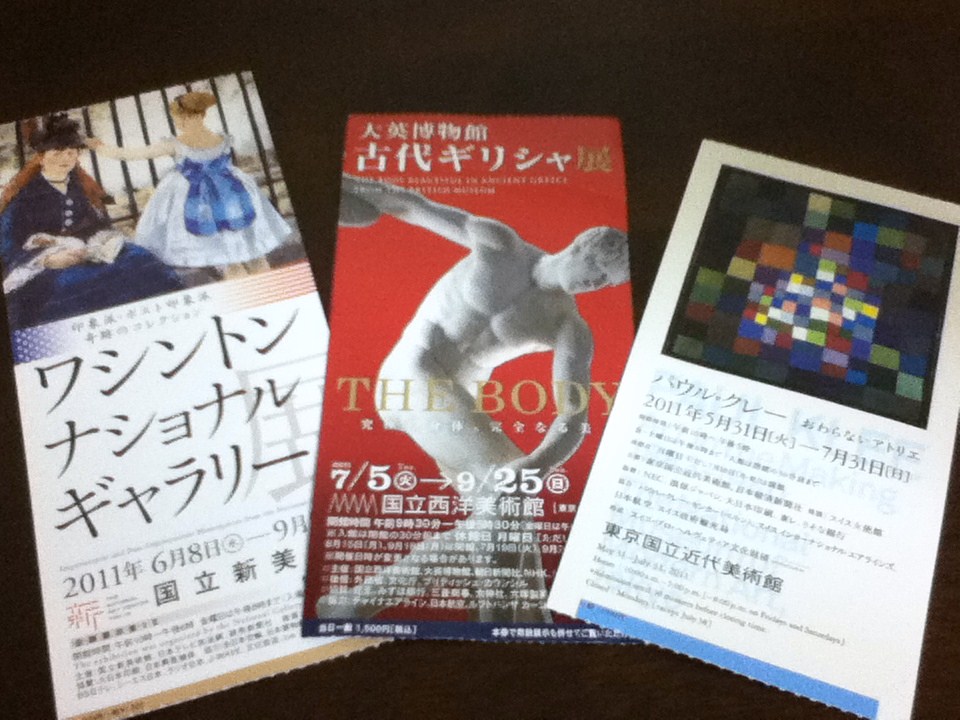 で、パウル・クレー展の客層なんだけど・・比較的年齢層が若い。そして独創的なオシャレをしてる人が多い。 独創的なオシャレってともすればセンスが悪かったりひとりよがりで見るに堪えなかったり異様になよっちかったり懲りすぎて過剰になったりすることが多いんだけど、そうはならずに美的に納得できるっていうか・・・たとえば男子だけに限定して言っても、冴えたスカイブルーのTシャツに薄いパープルのスゥエットパーカを重ね着してたり、形はあくまでオーソドックスなシャツなんだけど柄や色に一癖あってしかもよく似合ってたり、普通丈のチノやワークパンツじゃなくってショーツを品よくものにしていて、足元はちょっと凝ったデザインのビルケンシュトックだったり、アイウエアやかぶりもの・・・奇をてらわず、古臭くならず、フェミ男にもならない範囲のアイテムを上手に使って着こなしている。 年齢層が比較的若いと言ったが老齢層もクールなオーラをまとった人が多かった。 職業的にたとえて言うと、アーチストとか服のデザイナーっていうより建築家とかプロダクトデザイナーとかウエブデザイナーとか、理系入ってます系の前衛クリエイターっぽい。 クレー自身がバウハウスの講師だったんだもんな・・・ツボが似てるんでしょうきっと。 もちろんクレーの絵にも線や色や構図やらものすごく刺激をうけたんだけど、おんなじくらい観客の皆さんにも楽しませてもらった。(ただしそういったオシャレをしたセンスのいい男女が性的に魅力的かというとそれとこれとは別問題なんだけど・・・)