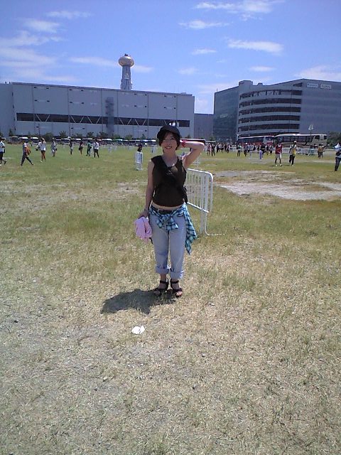 さて、真夏の大阪といえば殺人的な暑さが予想される。 暑さ対策や服装は一体どうするべきなのかとネットサーフィンしてみると、どうやら全くオシャレどころではなさそうな雰囲気・・・Tシャツ、膝丈パンツにスニーカー、ベースボールキャップ、そして首にはタオルという、まるでこれからPTAの奉仕活動行ってくるっスみたいなスタイルがマジで推奨されている。 メークしたって剥げるから意味ないとも書いてある。 でもなあ・・・せっかく露出多めでも大目に見てもらえそうな場所に行くんだし、あんちゃん達だっていっぱい来るのになあ・・・ビキニトップとかサマードレスとか着てばっちりメークした女子だって少なくないんじゃないの? 自分はマジで奉仕活動ルックして行っててそんな女の子とすれ違ったらたらなんだか虚しい気がするし・・・散々迷った挙句なんか中間取ったようなこんなカッコで行きました。