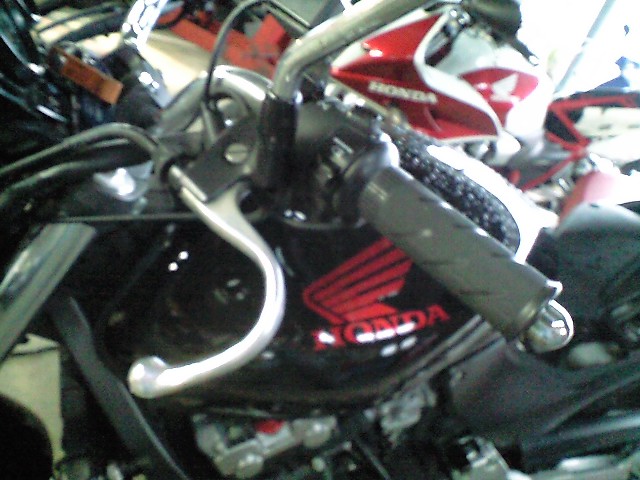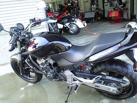 ・・・・幸い私に怪我はなく、駐車してあった車の方も無傷、仁くんの方もシフトレバーのMIKA巻きと、シフトペダルが内側にめり込んだだけで、タンクやエンジンは無事だった。 翌日バイク屋の店長に軽トラで引き取りに来ていただき、一緒にバイク屋に帰ってきたら、I様とT君がいた・・・ばれたぜ。 でもI様が怪我がなくてよかったと何度も言って下さりちょっとじーんときた。