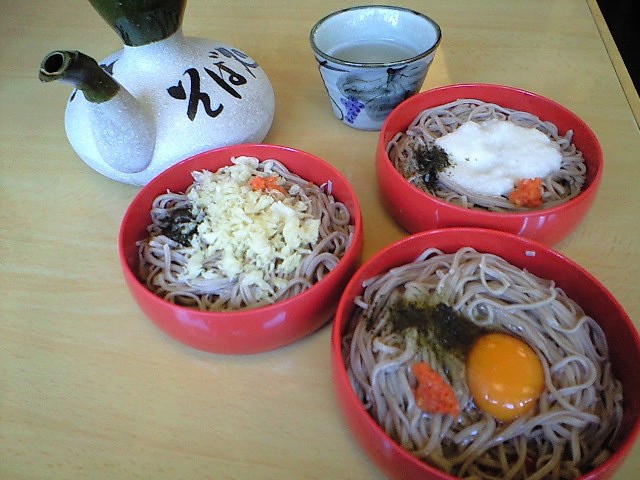 折角なので出雲蕎麦を食べに行く。 今回は三食そばの完全バージョン(ただしネギ抜き)の写真が撮れました。 鳥居の真横のいつもの蕎麦屋さん。 ここはお蕎麦はアベレージだけどお出汁と蕎麦湯がおいしいので好き。