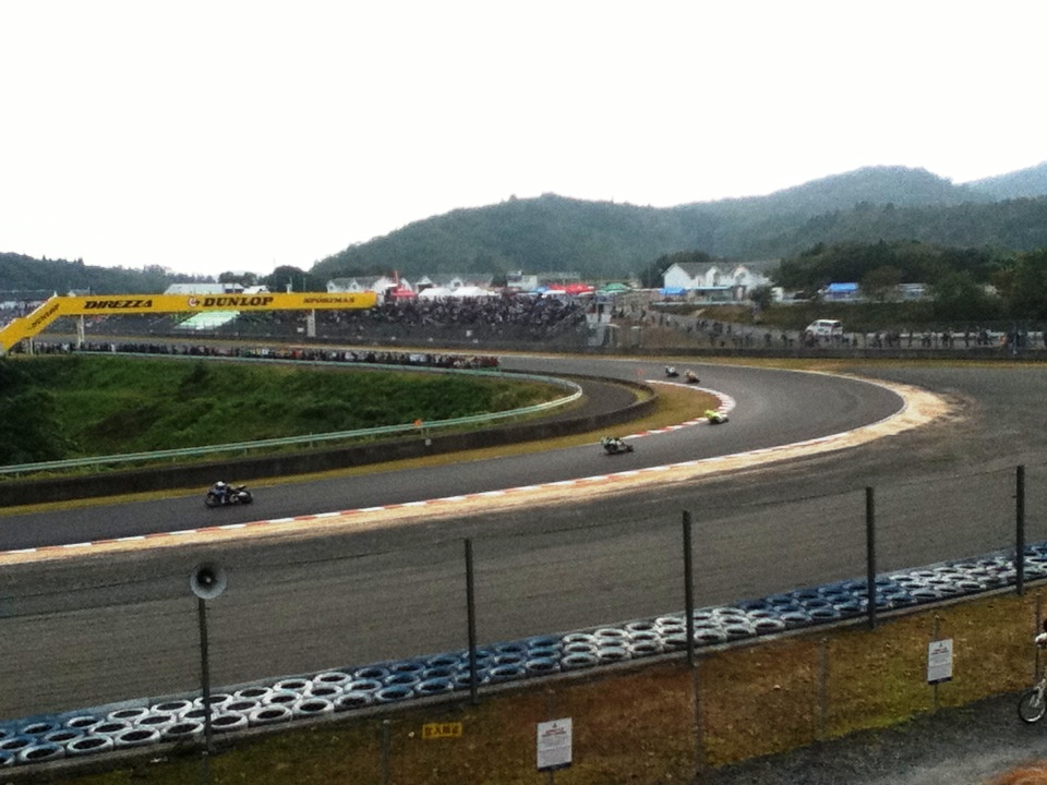 最終レースが始まった。 みんな盛んに驚きの声を上げる。 直線から100km/h近い速度で第一コーナーに突っ込み、あり得ないような地点でアクセルを開き始め、車体をズルズルとスライドさせながら第二コーナー直前で車体を立て直し再び突っ込んでいく・・・何であれで転倒しないんだ? みんな正気の沙汰とは思えん! とみなさん興奮気味だが私には何が何やらいまいちその凄さが実感できない。 私にもできるかも、よ? とつぶやいてみたら、あんただったら2回転ごろごろしとるわ。 とトラさんに言われた。